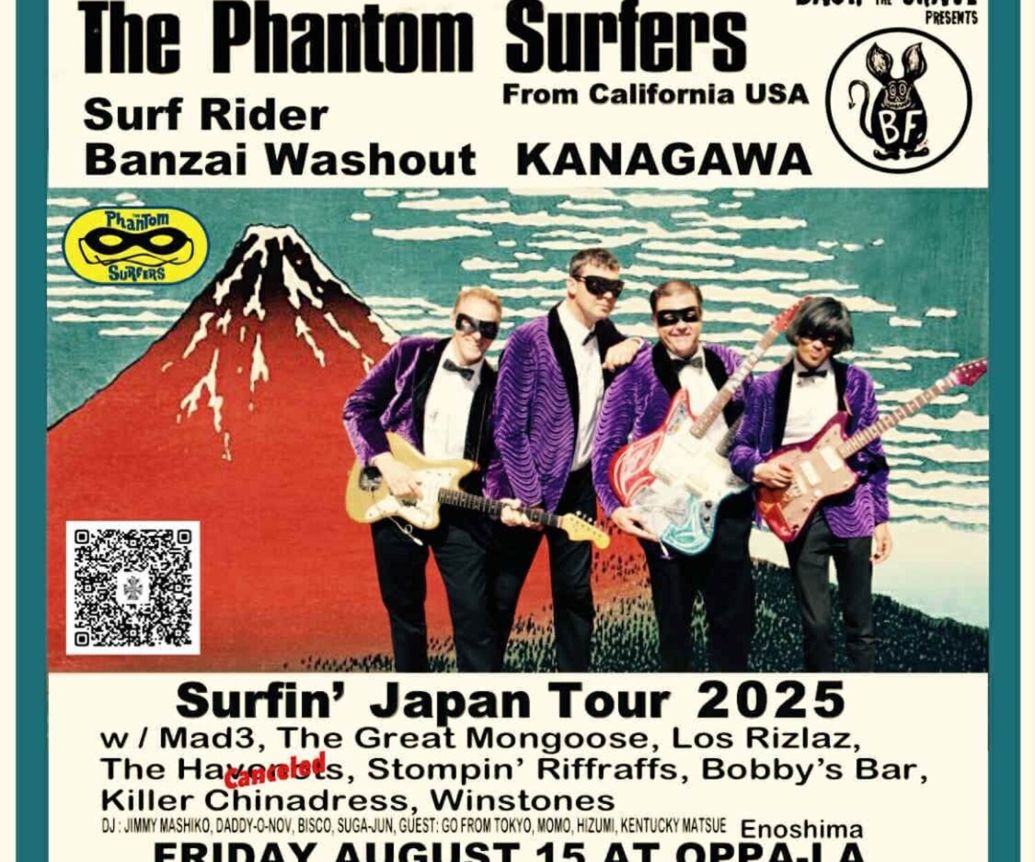 info, live/dj, NEWS, Schedule 11 8月 2025 2025.08.15.SATBack From The Grave “The Phantom Sufers Surfin’ Japan Tour 2025″ wac