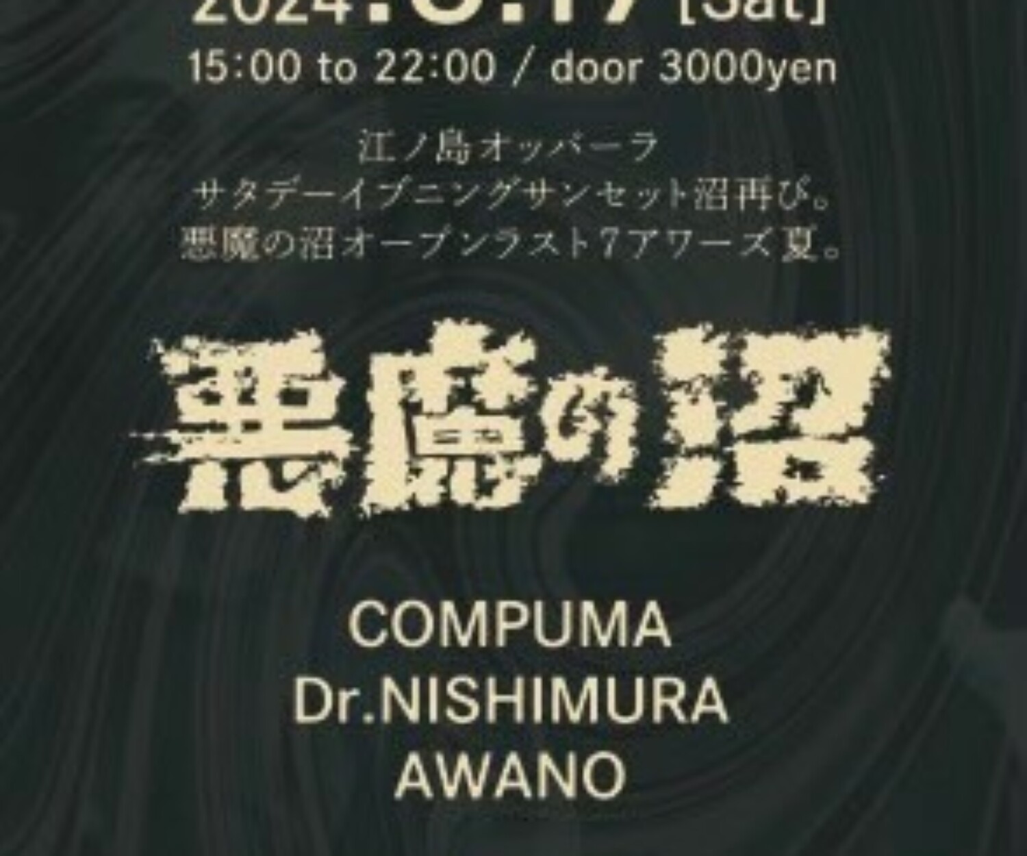 live/dj, NEWS, Schedule 04 7月 2024 2024.08.17.SAT悪魔の沼 “ the 7hours – Reunion – 悪魔の沼 “ the 7hours - Reunion - 江ノ島オッパーラ サタデーイブニングサンセット沼再び。… HIMITO