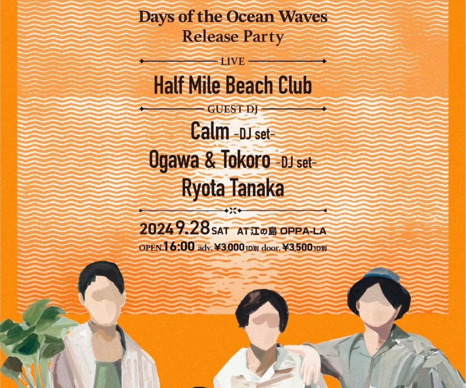 live/dj, NEWS, Schedule 18 7月 2024 2024.09.28.SAT“Days of the Ocean Waves”Release Party “Days of the Ocean Waves”Release Party 2024.09.28 sat 江ノ島OPPA-LA… HIMITO